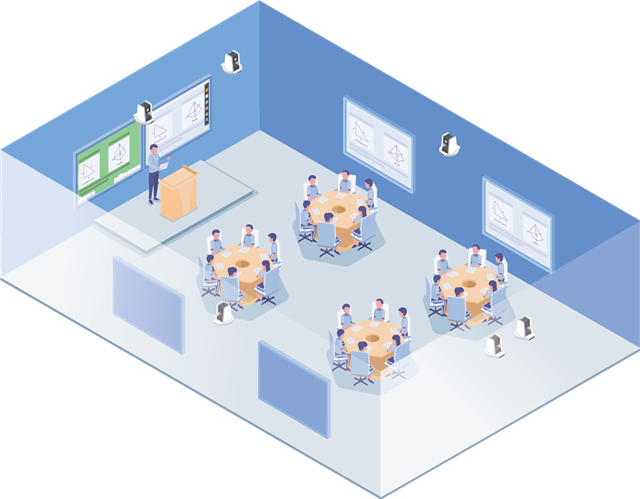 無須額外人力投入,奧威亞根據(jù)智慧互動教室的教學(xué)邏輯定制開發(fā)混合式跟蹤策略,以教師軌跡及焦點小組討論活動作為跟蹤依據(jù),自動捕捉、拍攝授課情況。