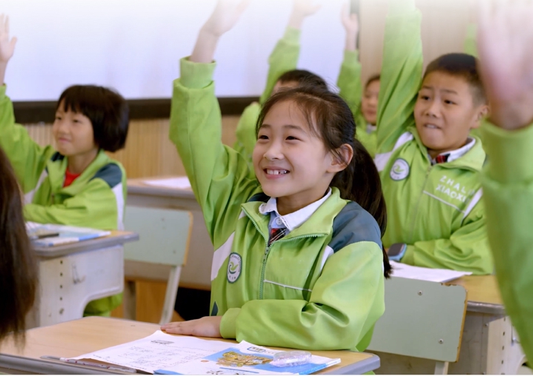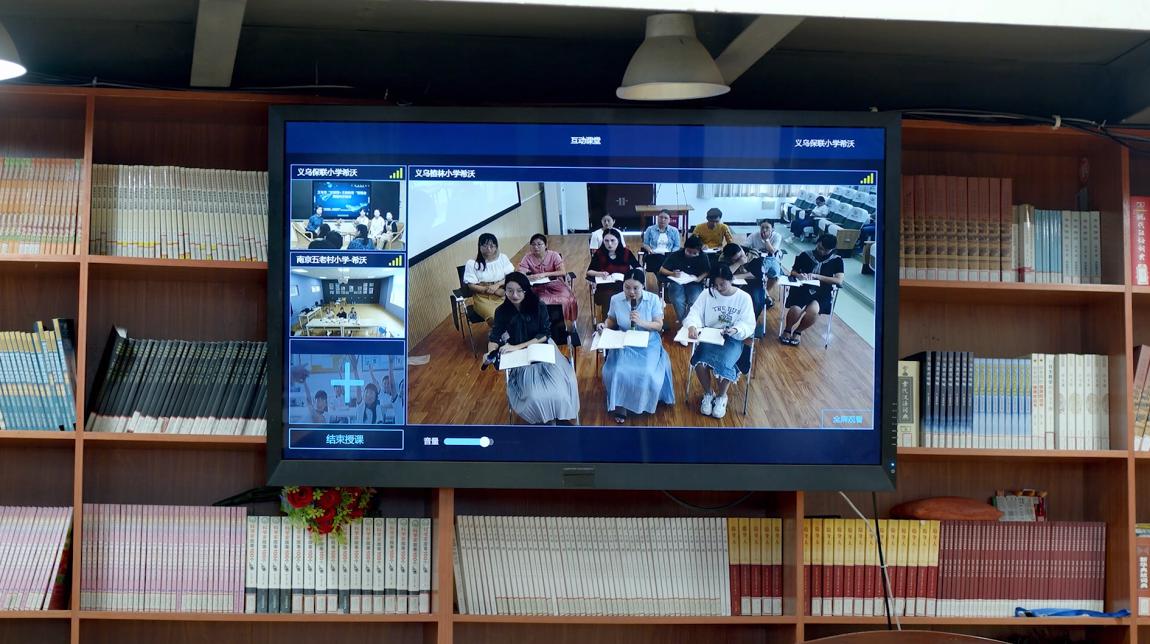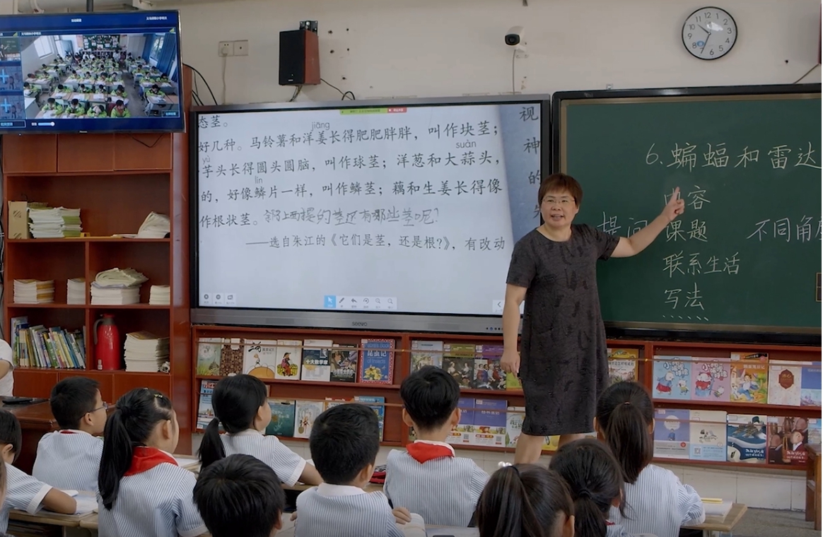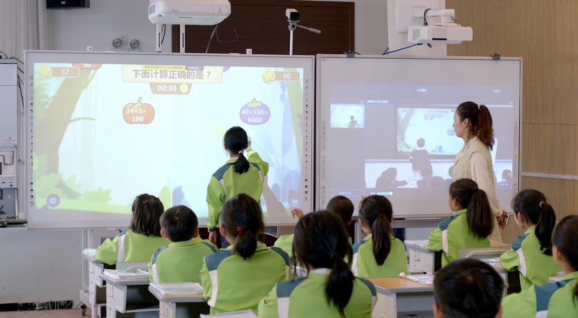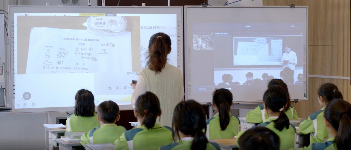 原來,和他一起完成游戲的伙伴,正置身幾十公里之外楂林小學的屏幕前。兩校在希沃交互智能錄播的助力下,常態(tài)化開展同步課堂。